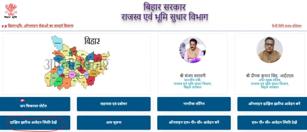 बिहार दाखिल खारिज स्टेटस (Mutation Status) ऑनलाइन चेक करें
